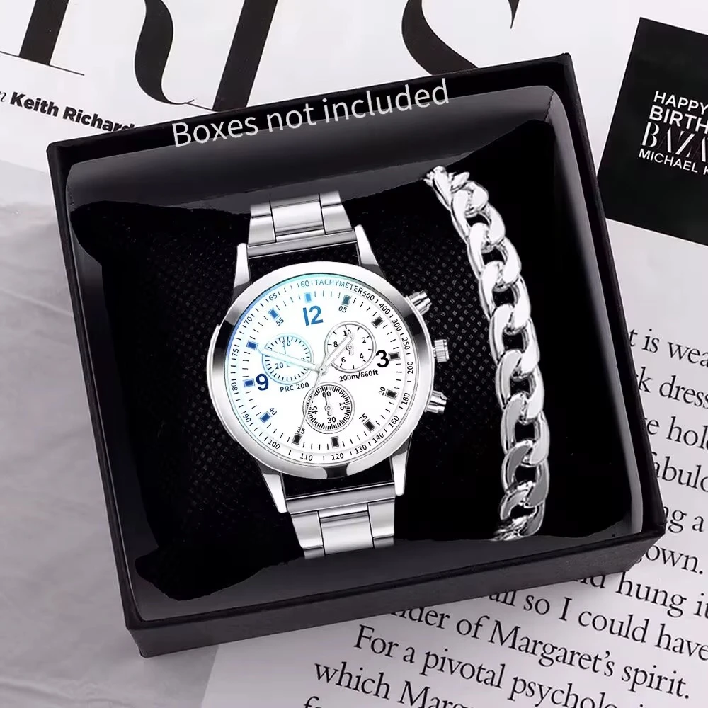 1/2PCS Men Business Watches Fashion Men's Steel Band Quartz Watch with Bracelet (Box not Included)