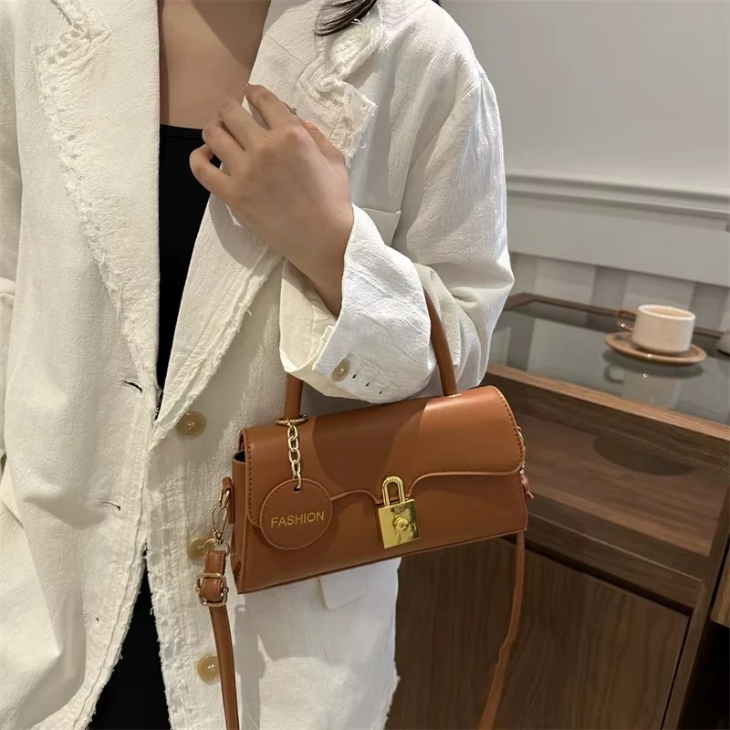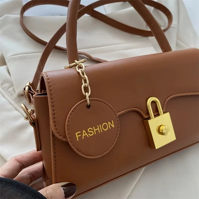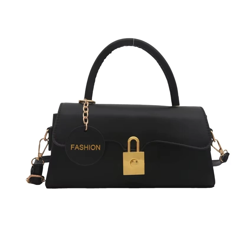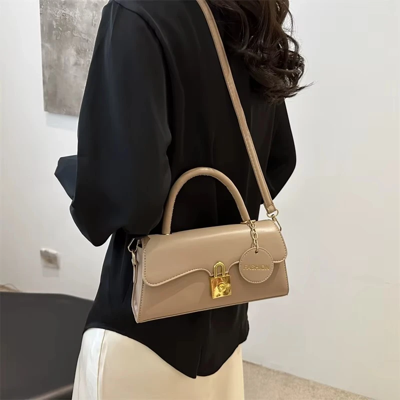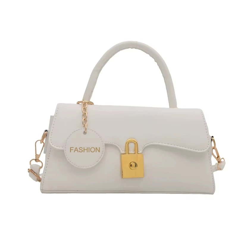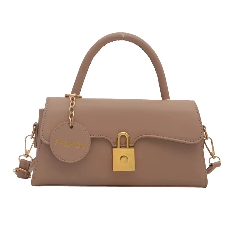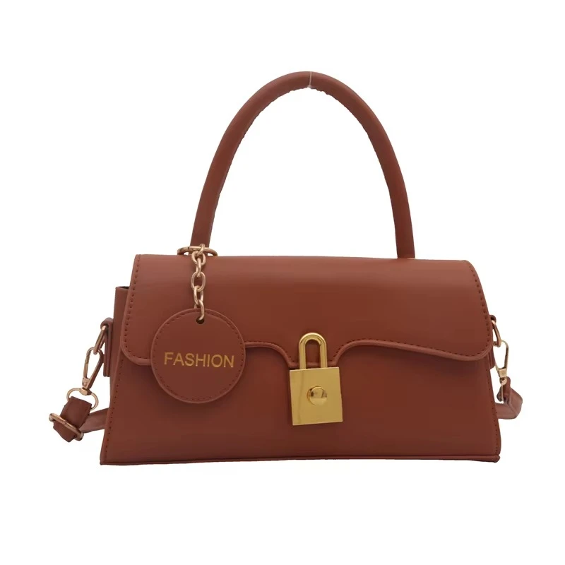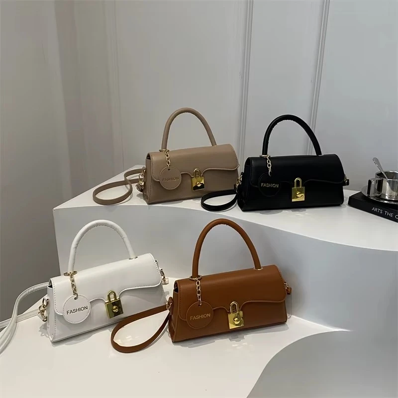 2025 Cross-Border Women's Handbag Trapezoidal Metal Lock Matte Finish with Chain Trim Embroidered