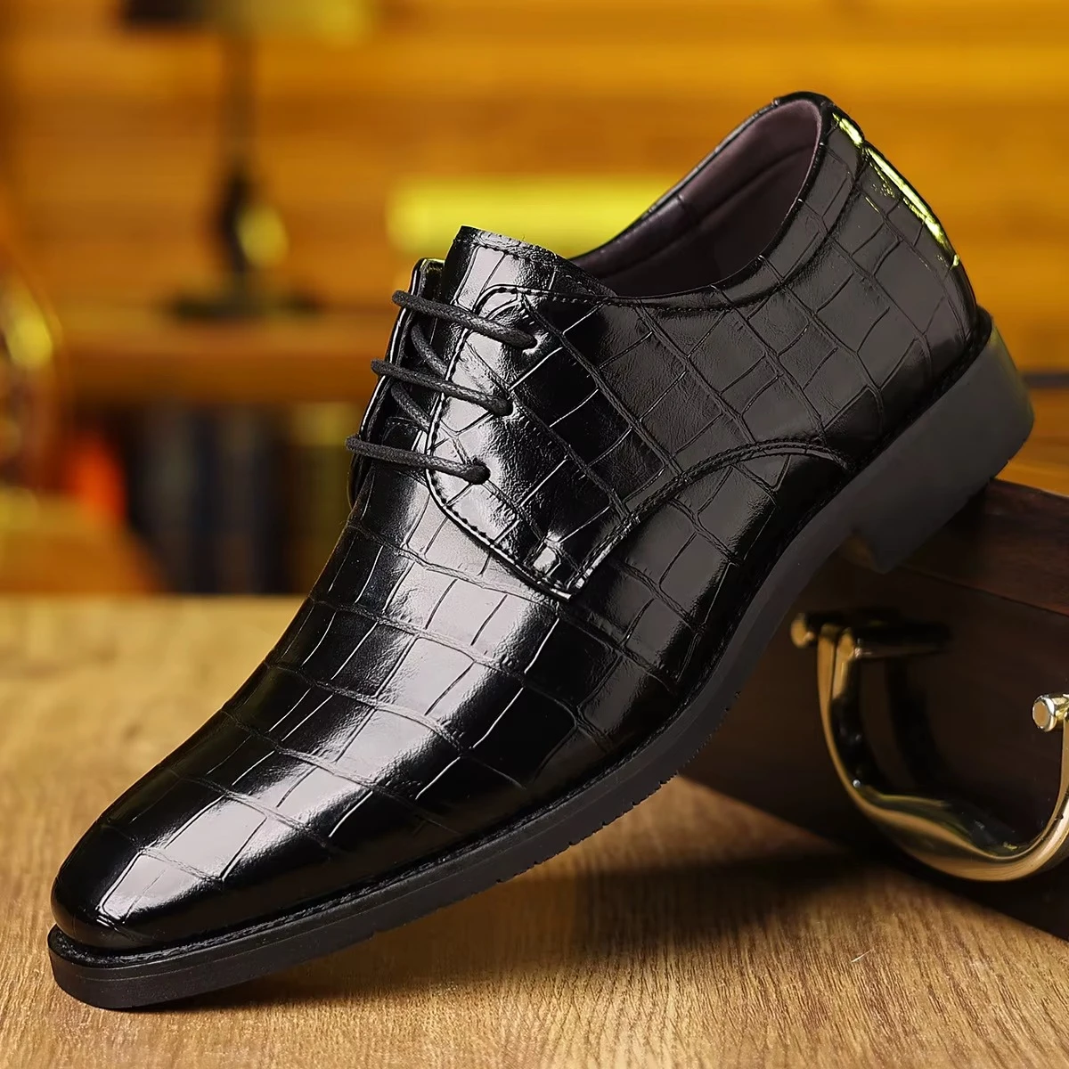 Britain New Gentleman Pointed Crocodile pattern Business Casual Shoes For Men Homecoming Formal Wedding Dress Footwear