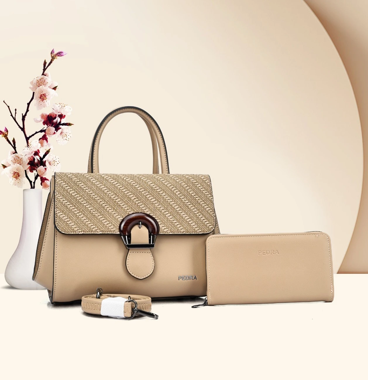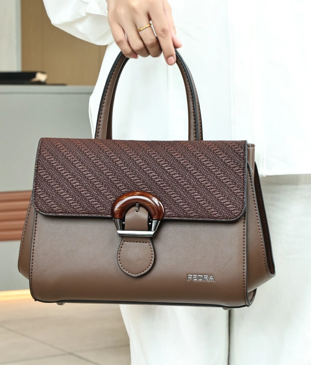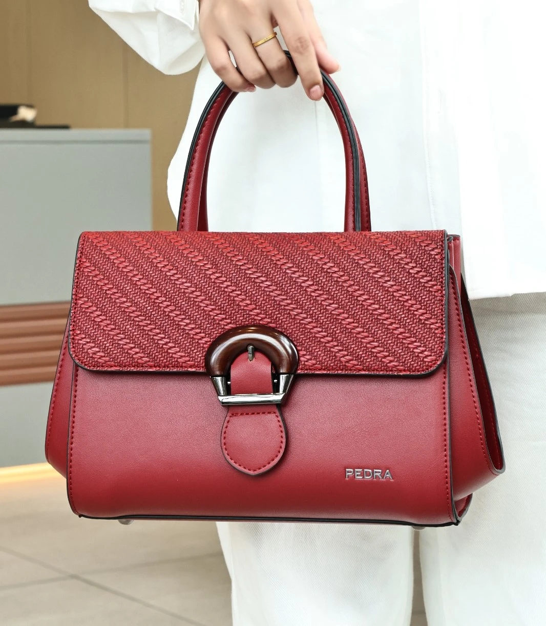 Textured surface inspired by litchi leather, giving the bag a premium look and added durability.
