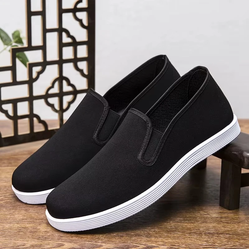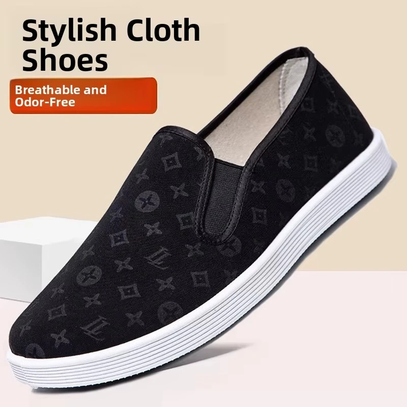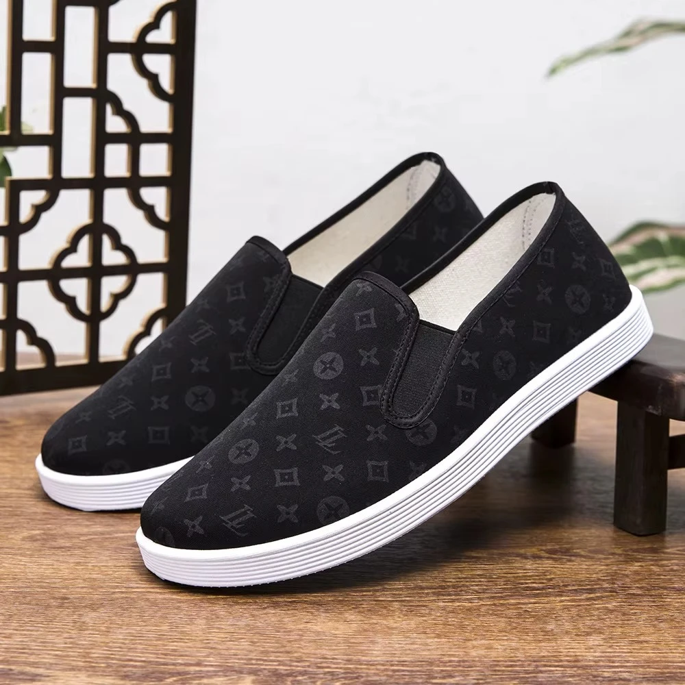 Low-Top Men's Shoes Chinese Style Soft Bottom Driving Shoes Breathable Casual Loafers Flat Heel Slip-On Canvas Shoes