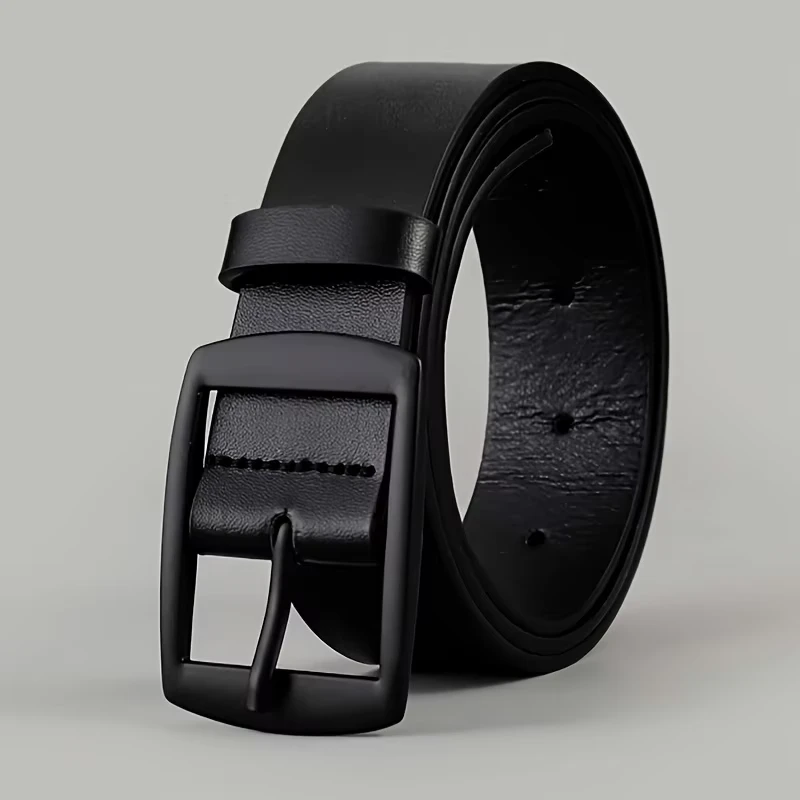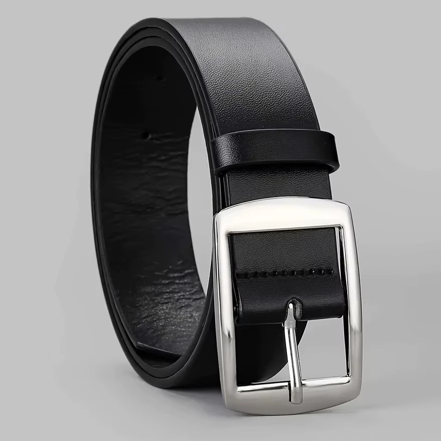 it’s a stylish, high-quality men’s PU leather belt with a metal pin buckle, designed for comfort and fashion, suitable for jeans, and available in larger sizes.