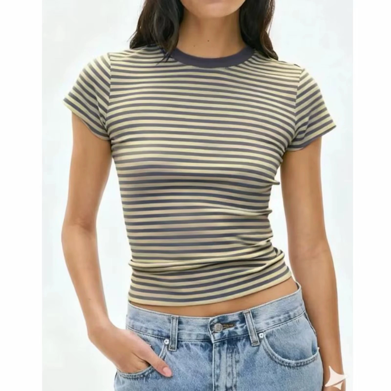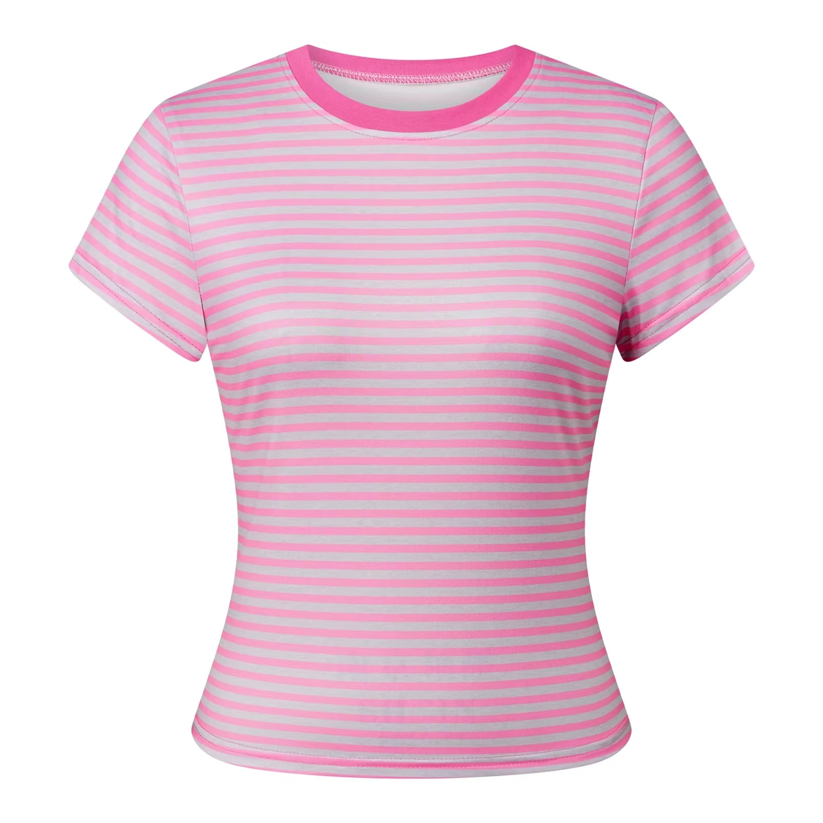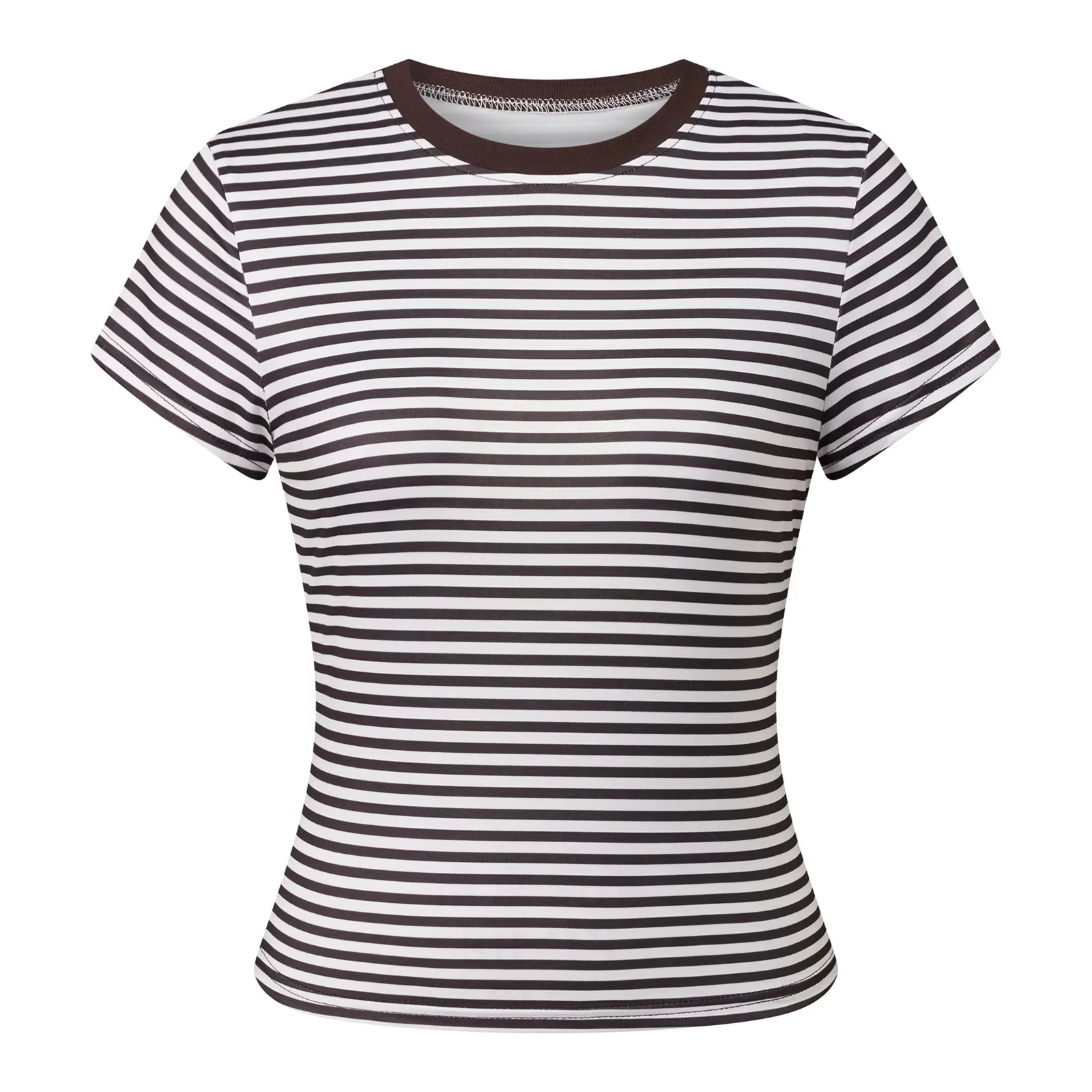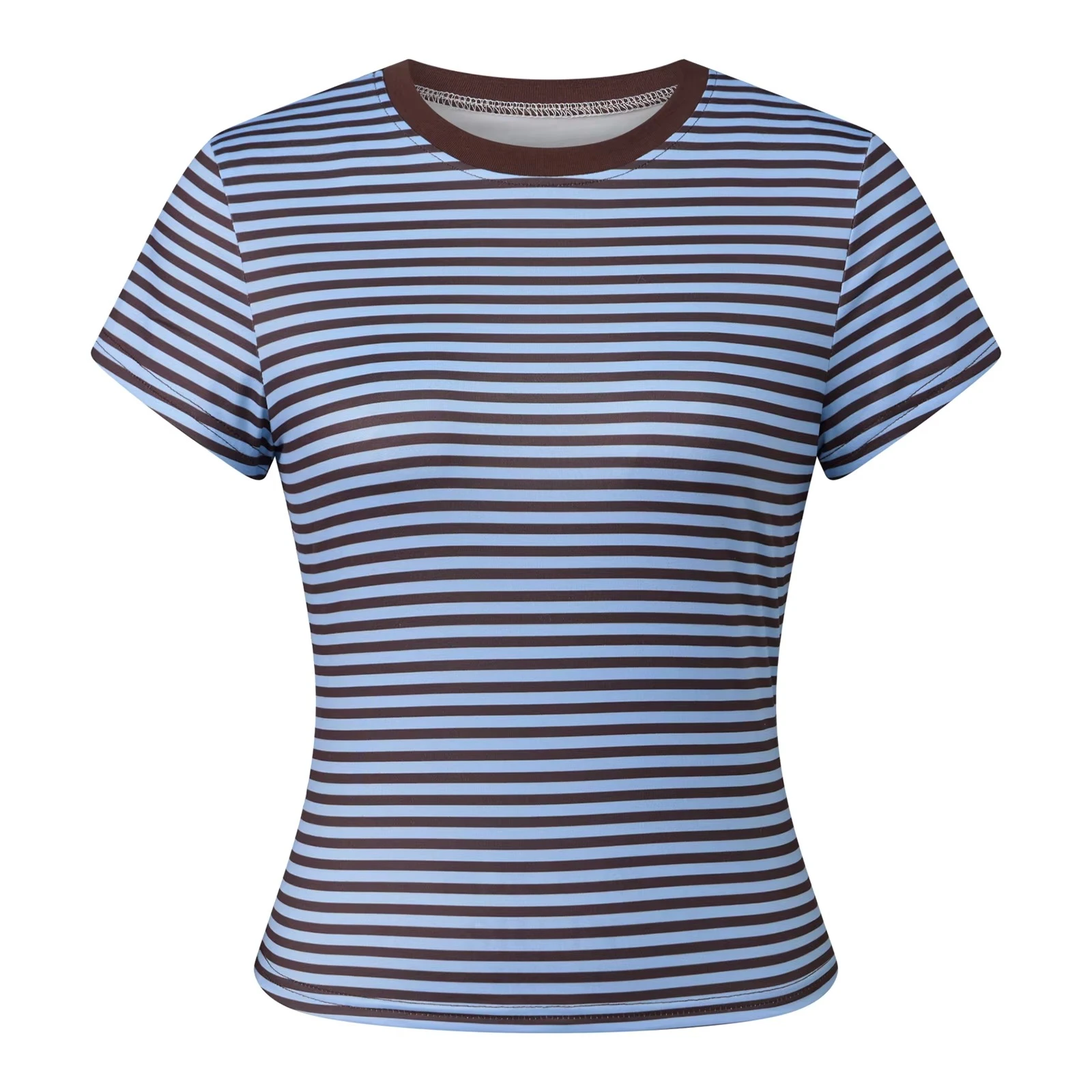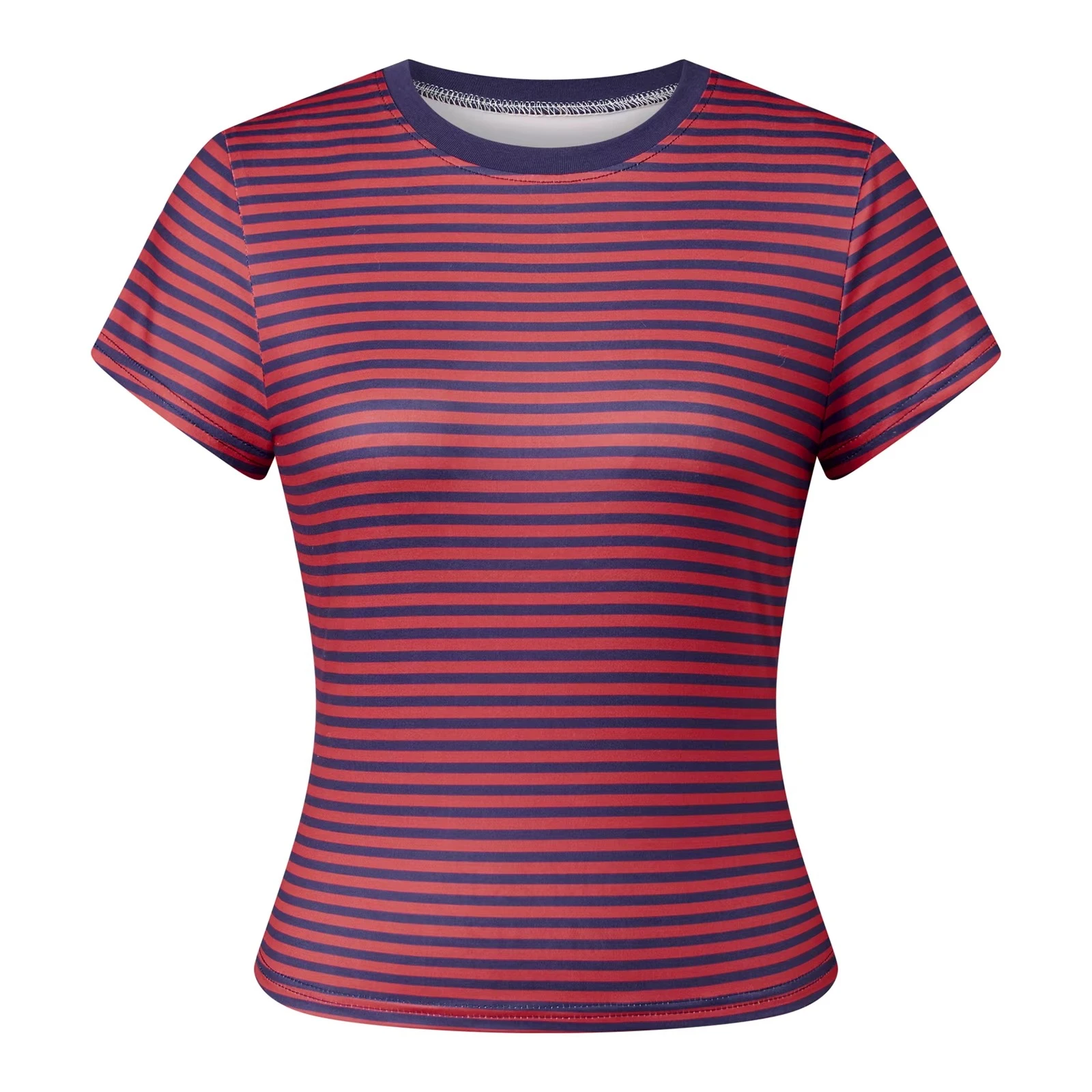 Sexy Women T Shirts E Girl Grunge Clothes Striped Round Neck Short Sleeve Tee Crop Tops y2k Aesthetic Clothing Daily Wear