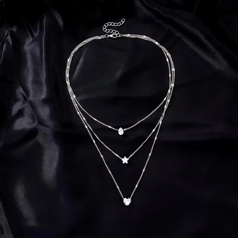 Trendy Zircon Pendant Necklace For Women Multilayer Chain Choker Fashion Female Party Shiny Jewelry Gift