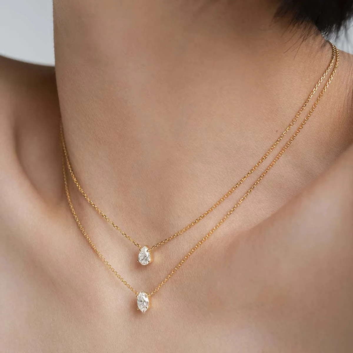 Choker length highlights neckline